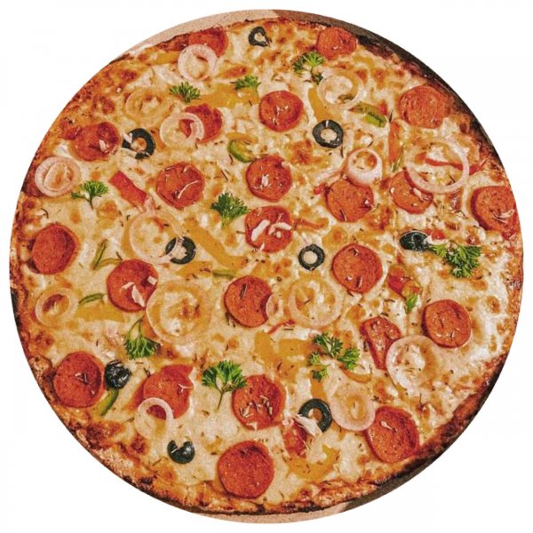 Mozerella Cheese, Creamy Cheese Sauce, Sausages,Bell pepper, Onion, Olives